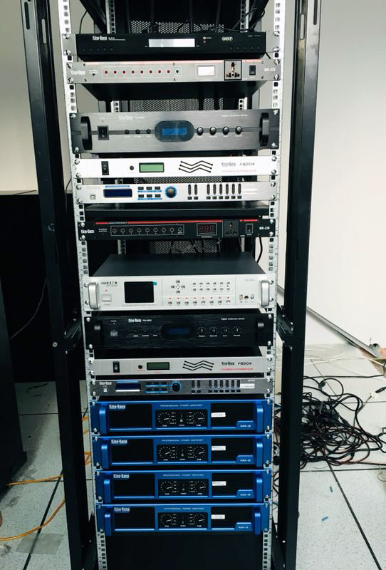 會議室擴聲系統(tǒng)參照國家相關設計標準進行設計,保證會議室在哪個角落都能夠聽得清楚,保證了會議室能夠滿足客戶的需求:功放功率嚴格按照音箱功率的1.5倍進行設置;設置有12路調音臺、均衡器和反饋抑制器等一系列專業(yè)設備,保證有優(yōu)秀的音色效果。